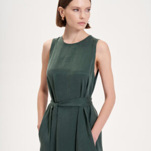 Prime Washed Silk Sleeveless Shirt Set – Khaki