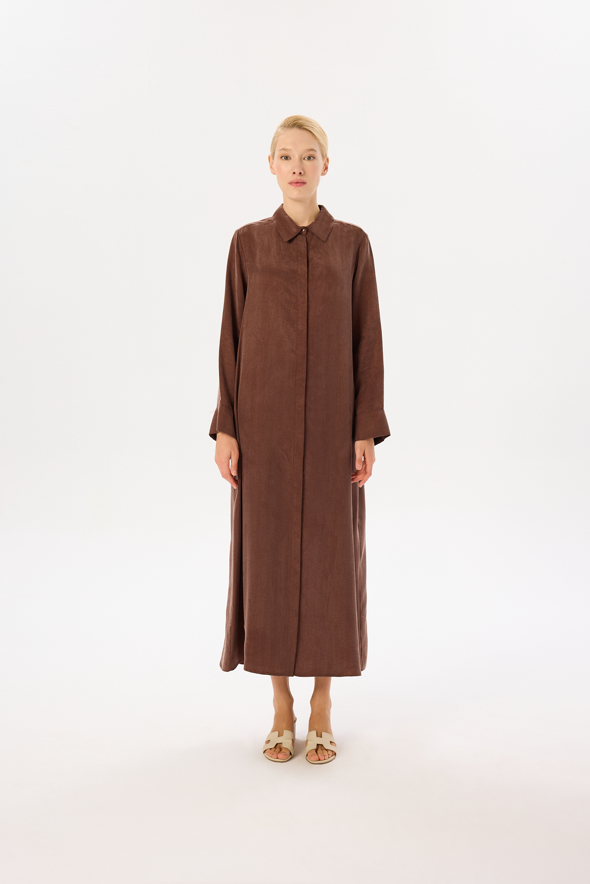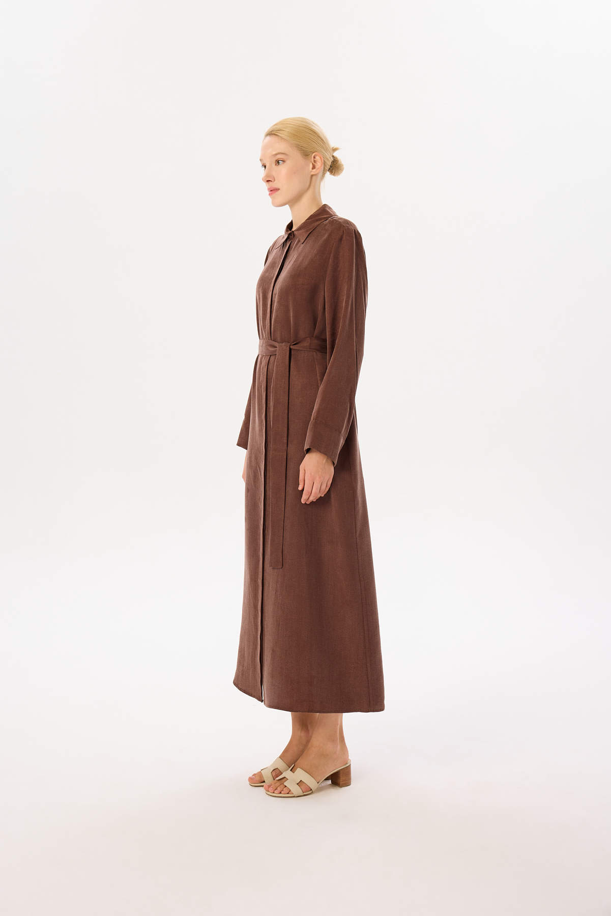 Prime Washed Silk Buttoned Belt Dress – Khaki