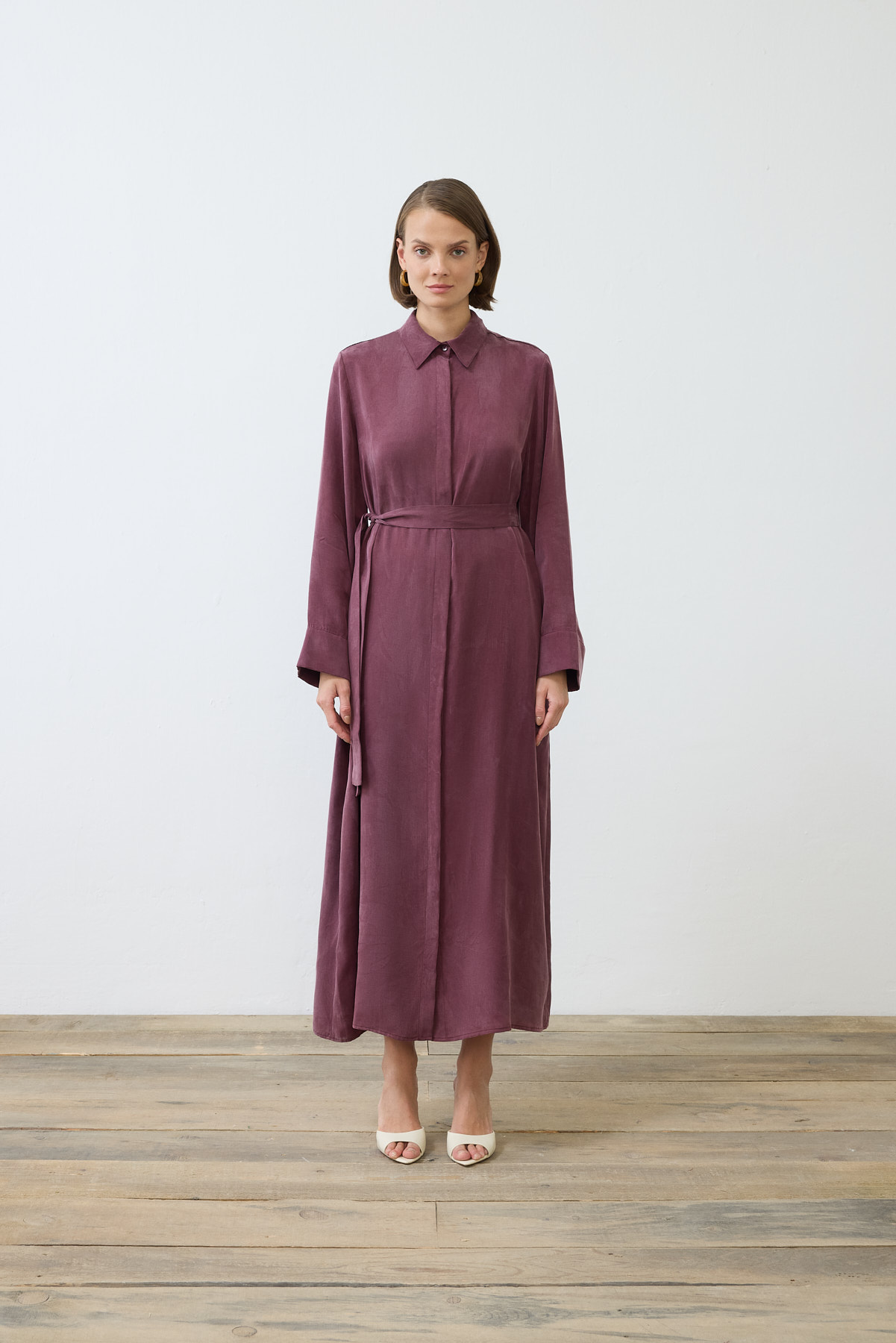 Prime Washed Silk Buttoned Belt Dress