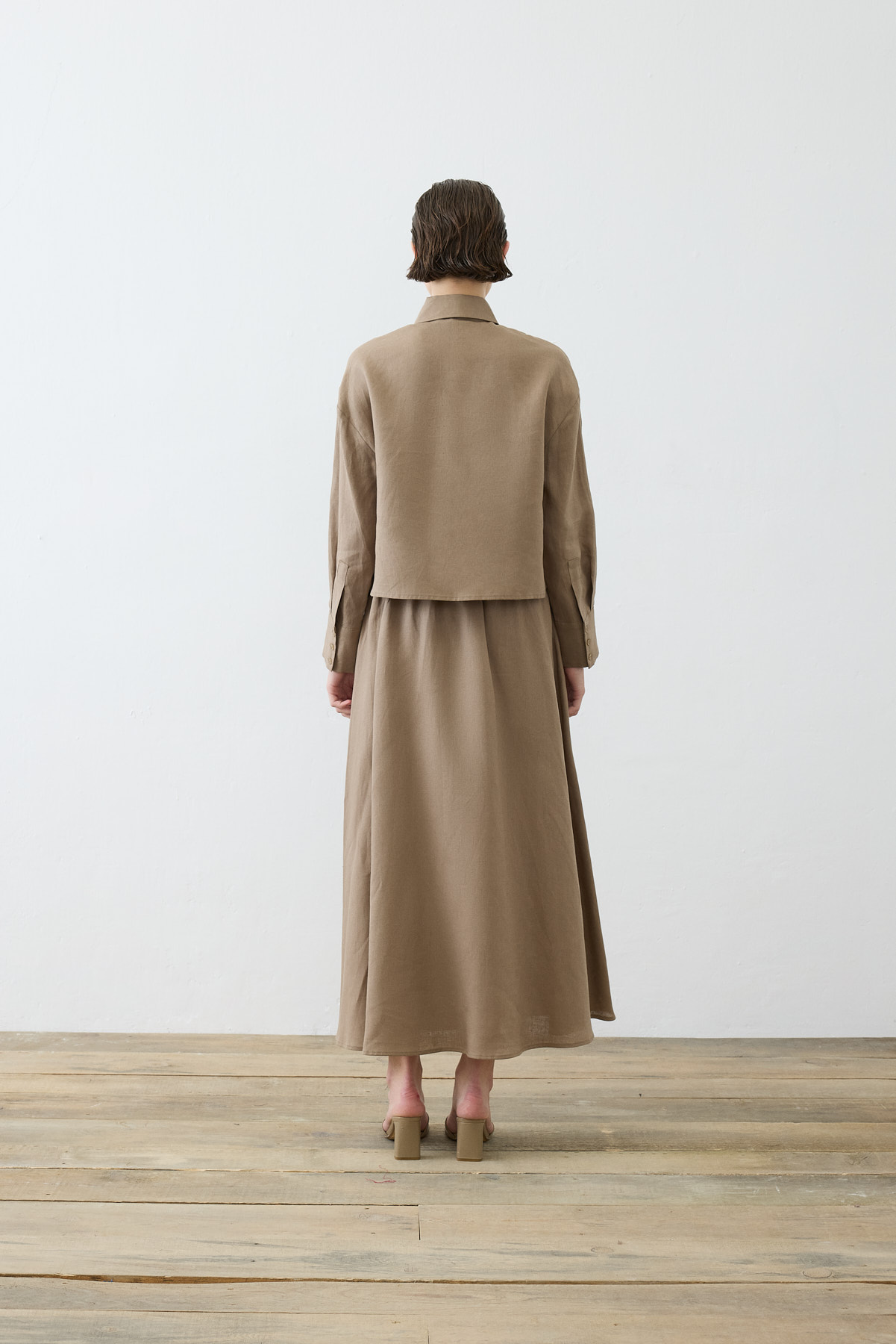 Prime Washed Silk Sleeveless Shirt Set – Khaki