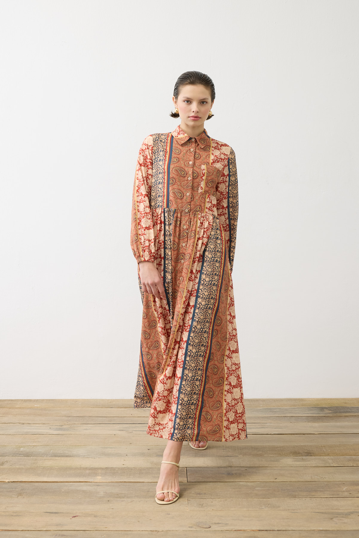 Pastel Patterned Viscose Rayon Shirt Dress – Powder Pink